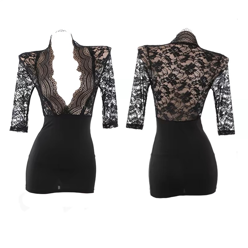 黑色蕾丝开叉睡裙